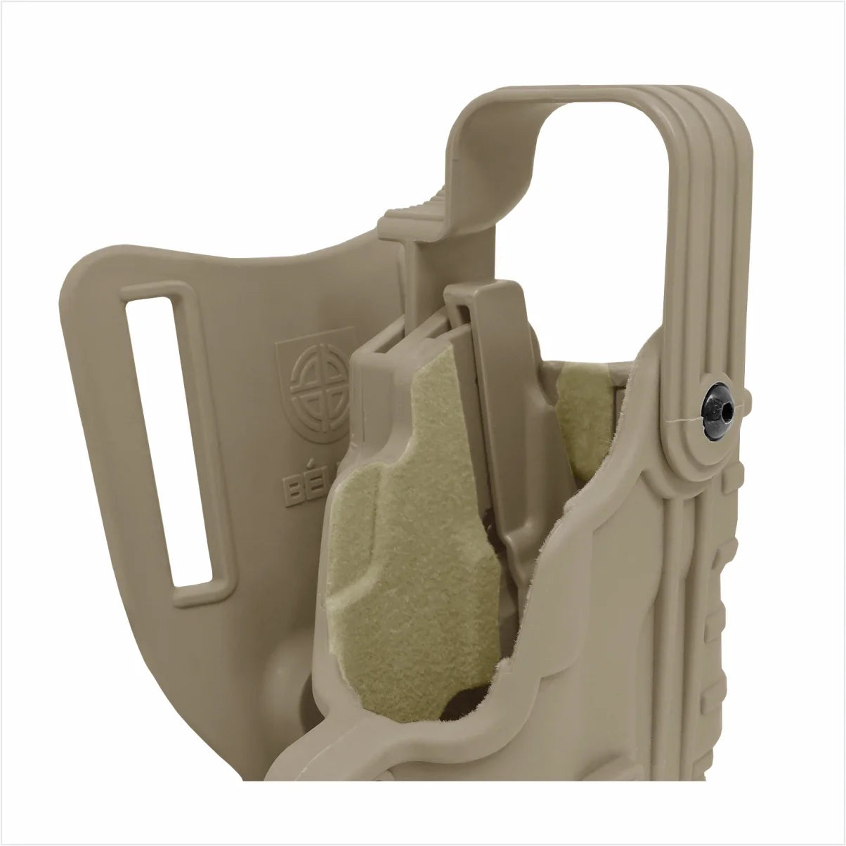 • A catraca serve também, para fixar o Coldre em outras plataformas Bélica compatíveis.